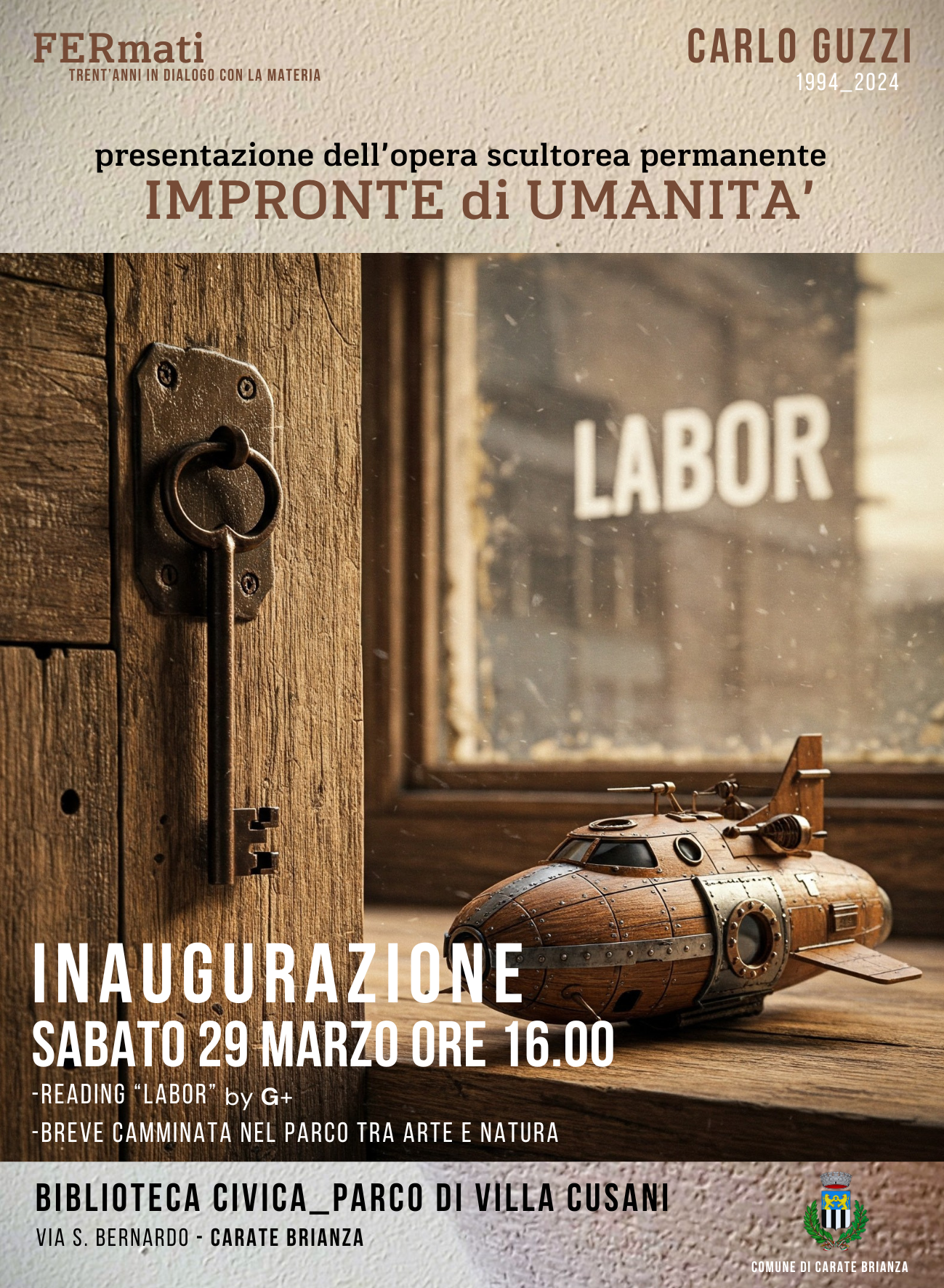 Sabato 29 marzo alle ore 16.00 verrà inaugurata la scultura “Impronte di umanità” di Carlo Guzzi, all’esterno della Biblioteca civica “G. Nobili”.