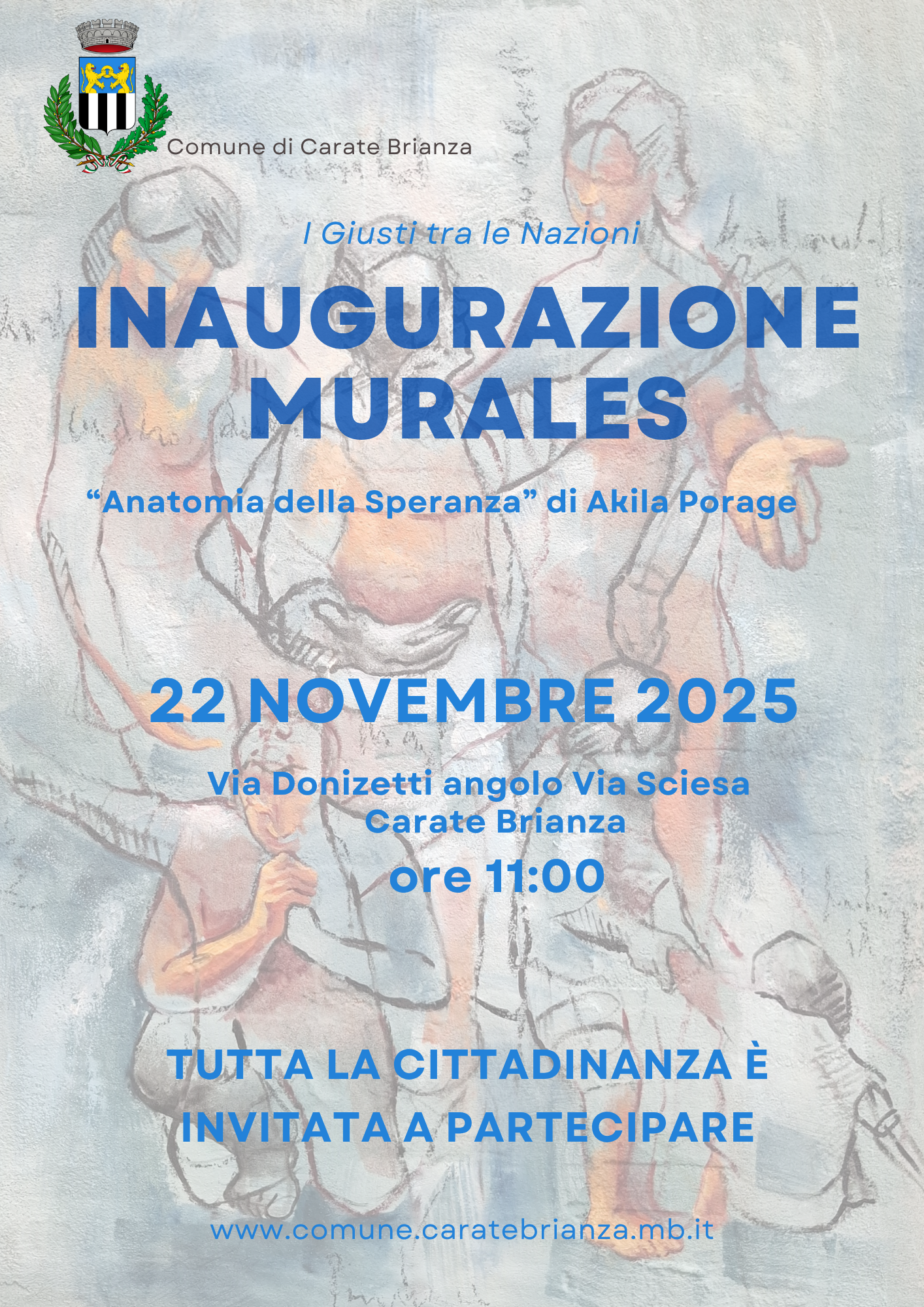 A seguito del Bando di Concorso "Forme d'Arte a Carate - Lo sguardo dei giovani", per la realizzazione del murales a tema "Giusti fra le nazioni", è stata realizzata l'opera vincitrice: "Anatomia della speranza" di Akila Porage.
