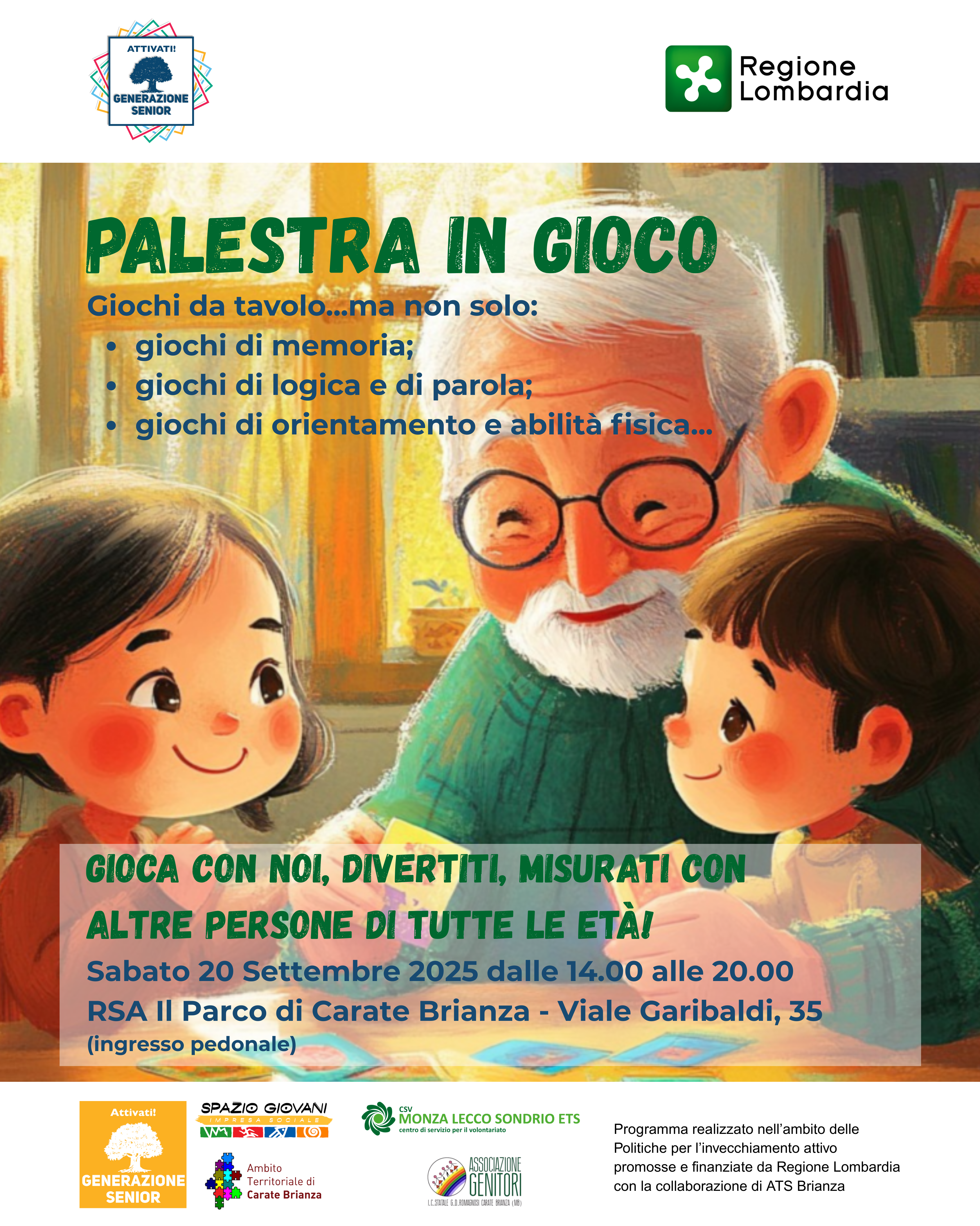 In allegato il volantino di “Palestra in gioco”, evento inserito nella più ampia iniziativa A piedi nudi nel Parco - 32° Giornata Mondiale dell’Alzheimer [inserire link al post]